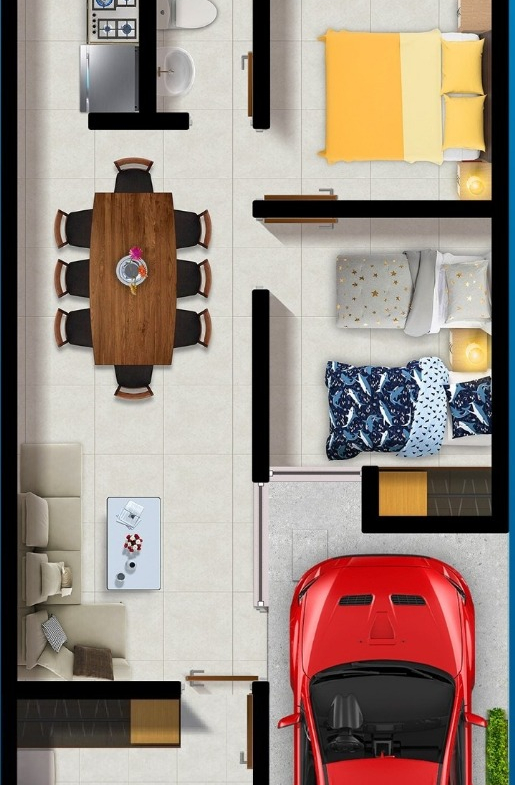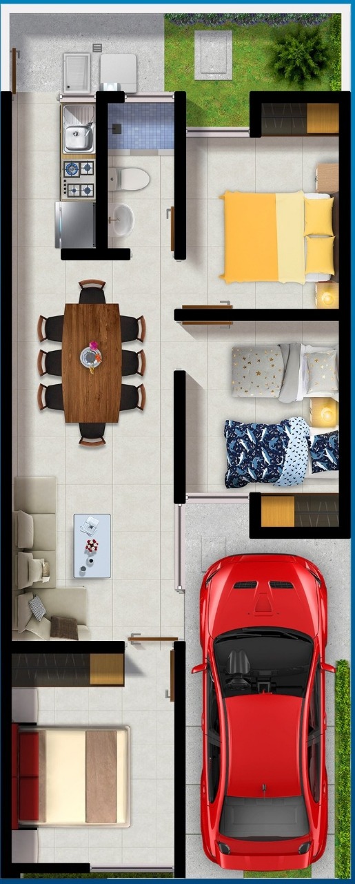 - Terreno: 90 m² (6 m de frente x 15 m de fondo)