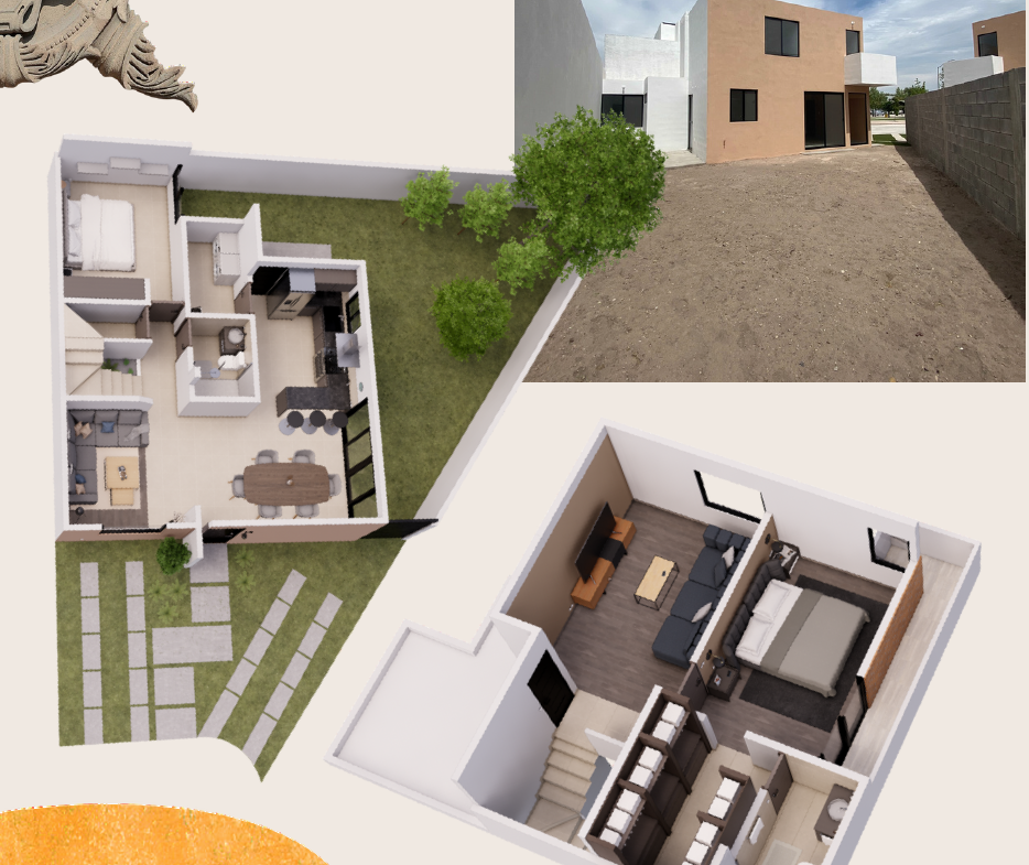 Descubre la comodidad y el diseño práctico de la modelo Amada en el Fraccionamiento Antequera — Pozos, San Luis Potosí. Ideal para quienes buscan una vivienda funcional sin renunciar a espacios exteriores: sala de estar y comedor conectados, cuarto de TV para tus momentos de ocio y un jardín privado que amplía las posibilidades de convivencia y descanso.