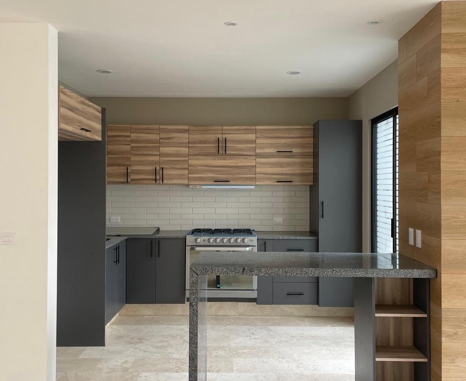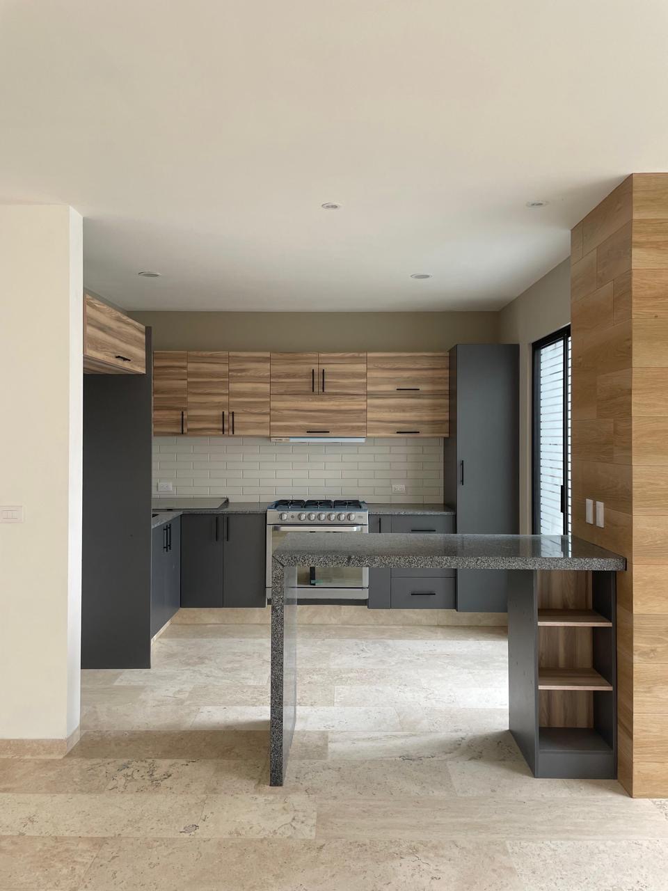 • Cocina: Integral con cubiertas de granito, estufa y campana
