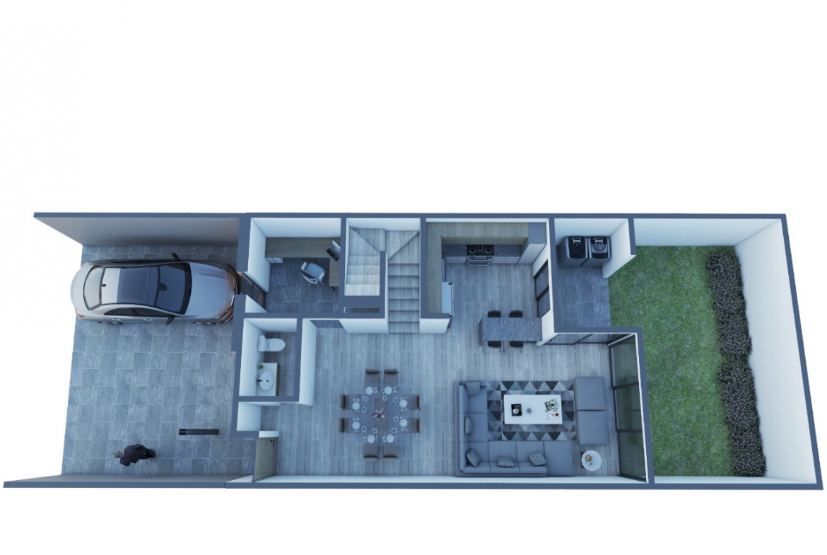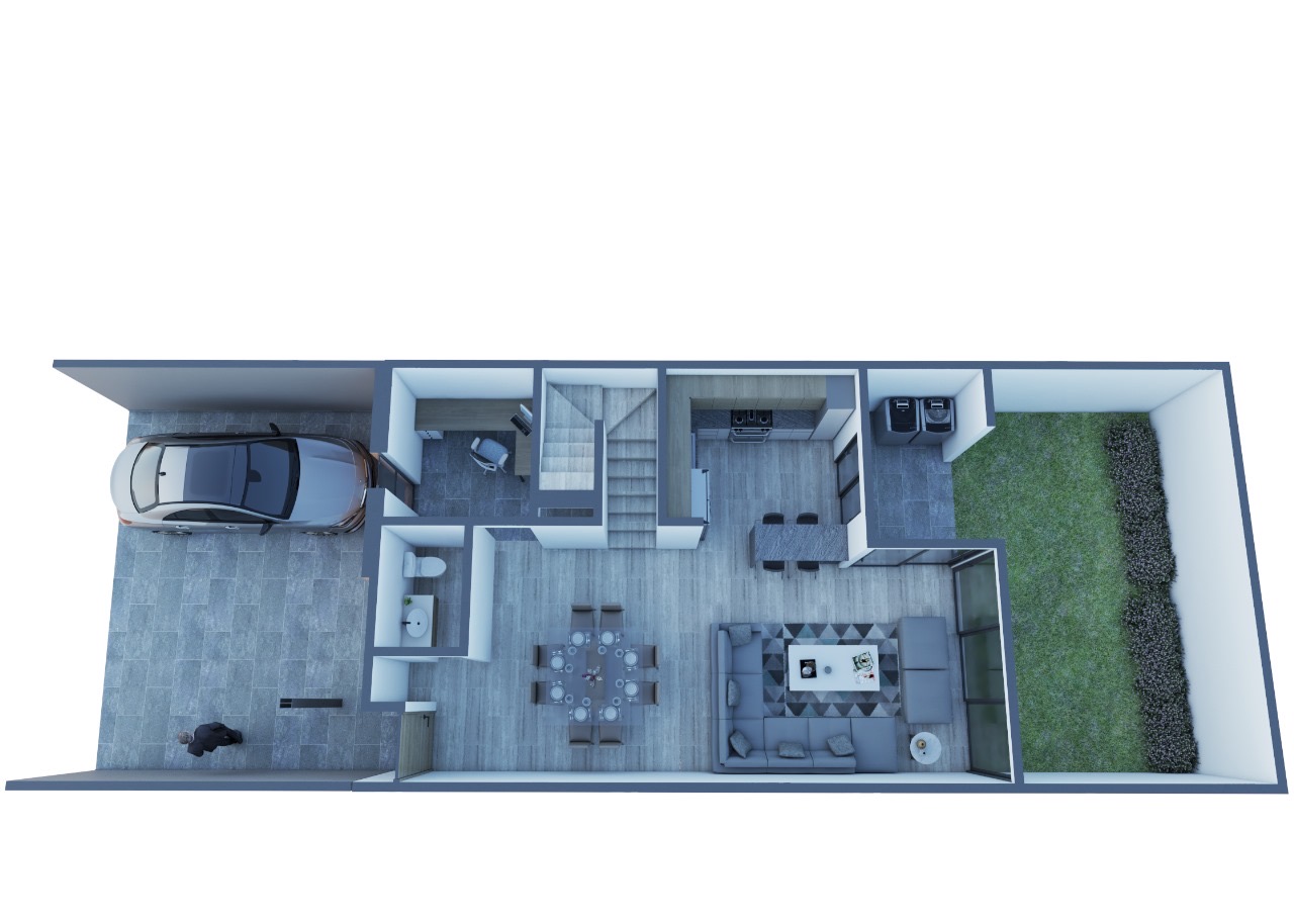 • Cochera para 2 autos y patio de servicio.