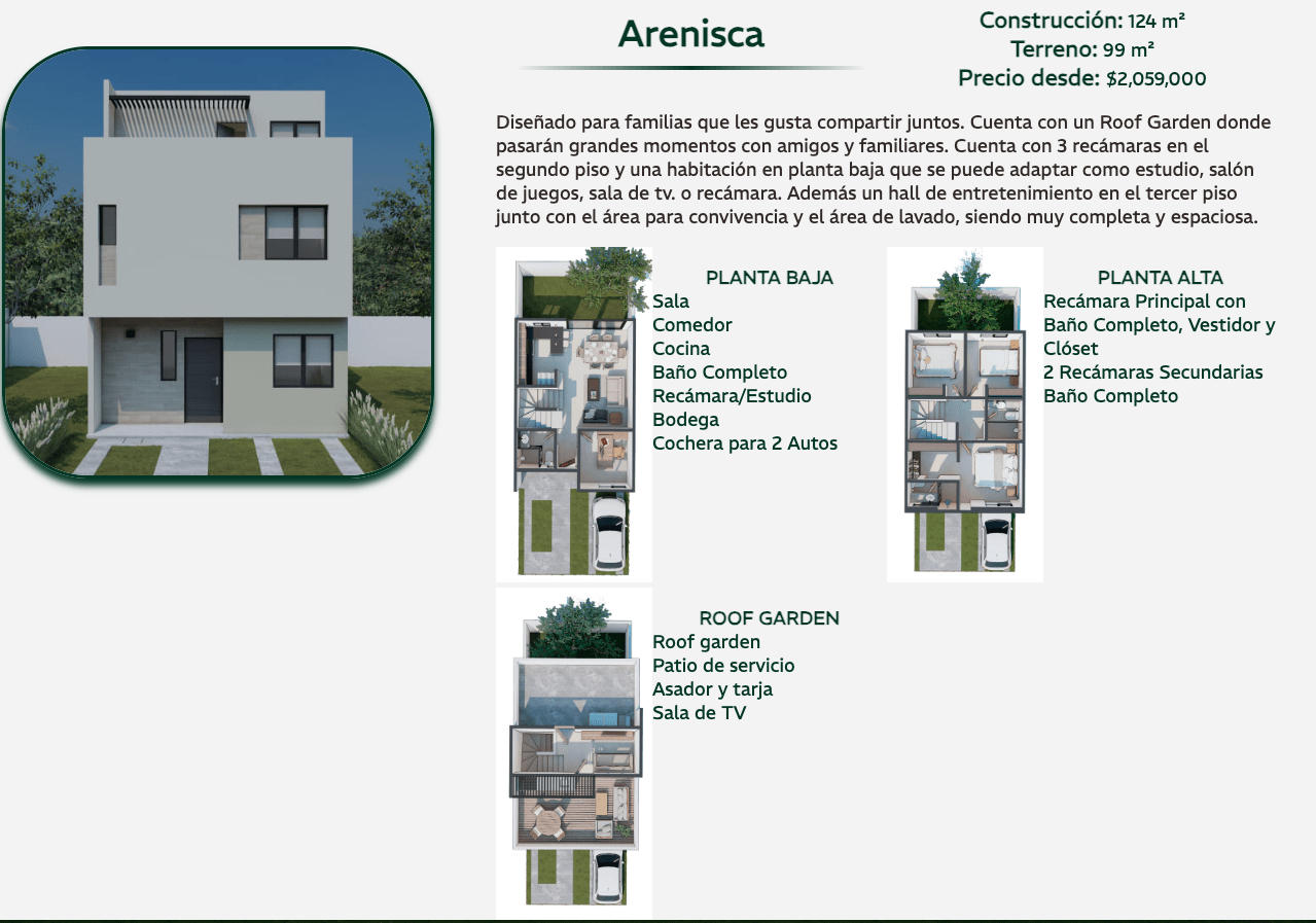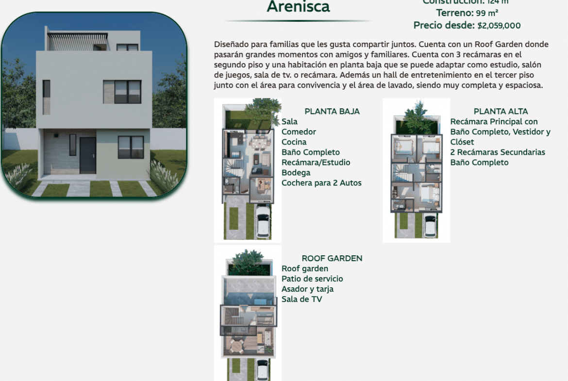 | Terreno | Desde 97.5 m² hasta 120 m² |