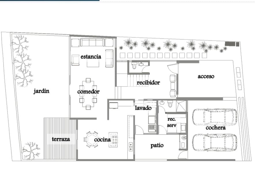 El diseño arquitectónico prioriza la privacidad y la convivencia social. En la Planta Baja, el área social fluye desde un elegante recibidor hacia la estancia y comedor de concepto abierto, conectados directamente con una cocina integral equipada que incluye área de antecomedor. El jardín privado ofrece un refugio al aire libre, complementado por un área de servicios completa que incluye cuarto de lavado, patio y un cuarto de servicio con baño independiente.