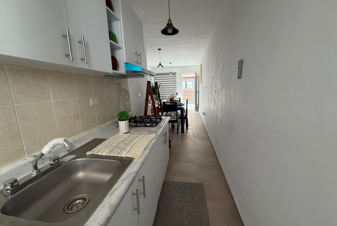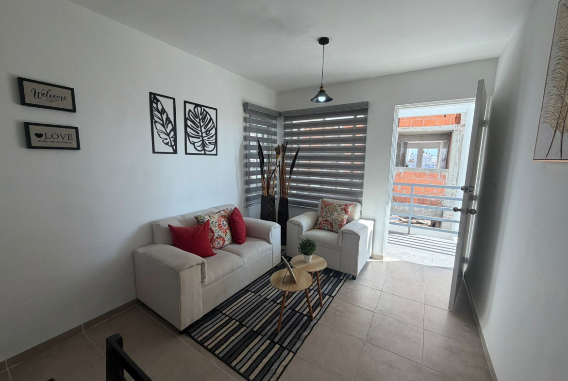 - Área Social: Sala y comedor integrados con acabados modernos que amplían visualmente el espacio.
