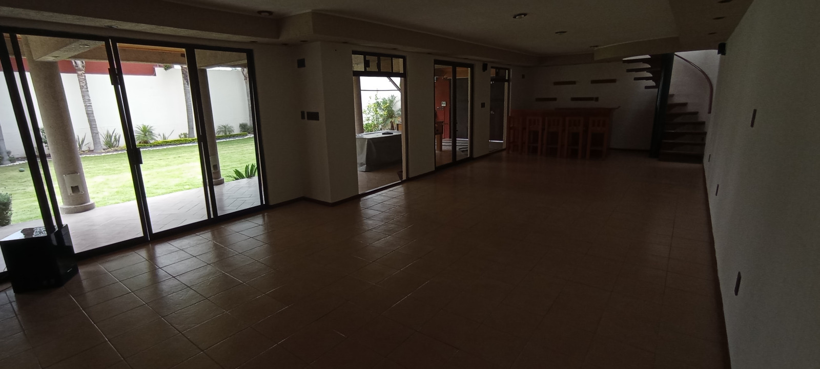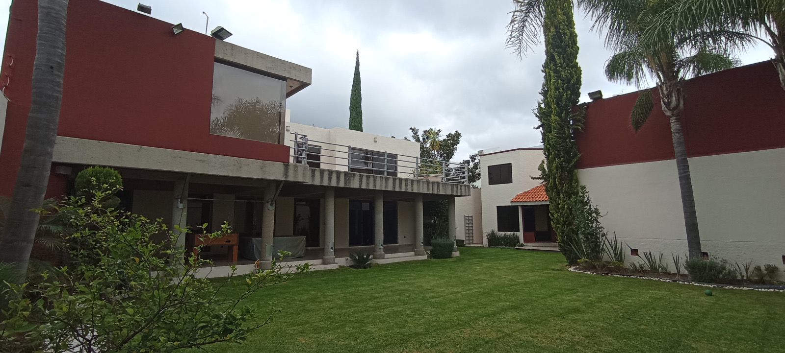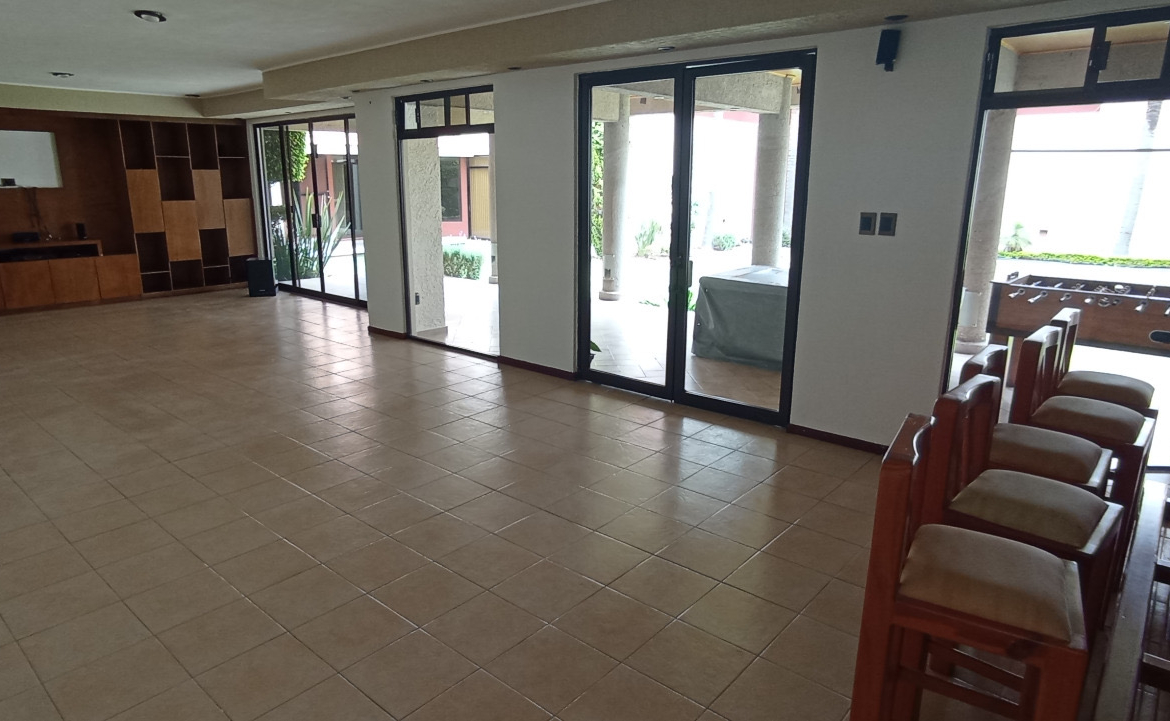 El área social se extiende a una construcción independiente que funciona como casa de visitas o zona de ocio, equipada con salón de cine, gimnasio, salón de fiestas con bar y una recámara adicional con jacuzzi. Todo esto rodea un majestuoso jardín central de 250 m² con paisajismo detallado, ideal para eventos sociales o recreación al aire libre.