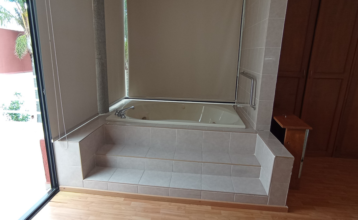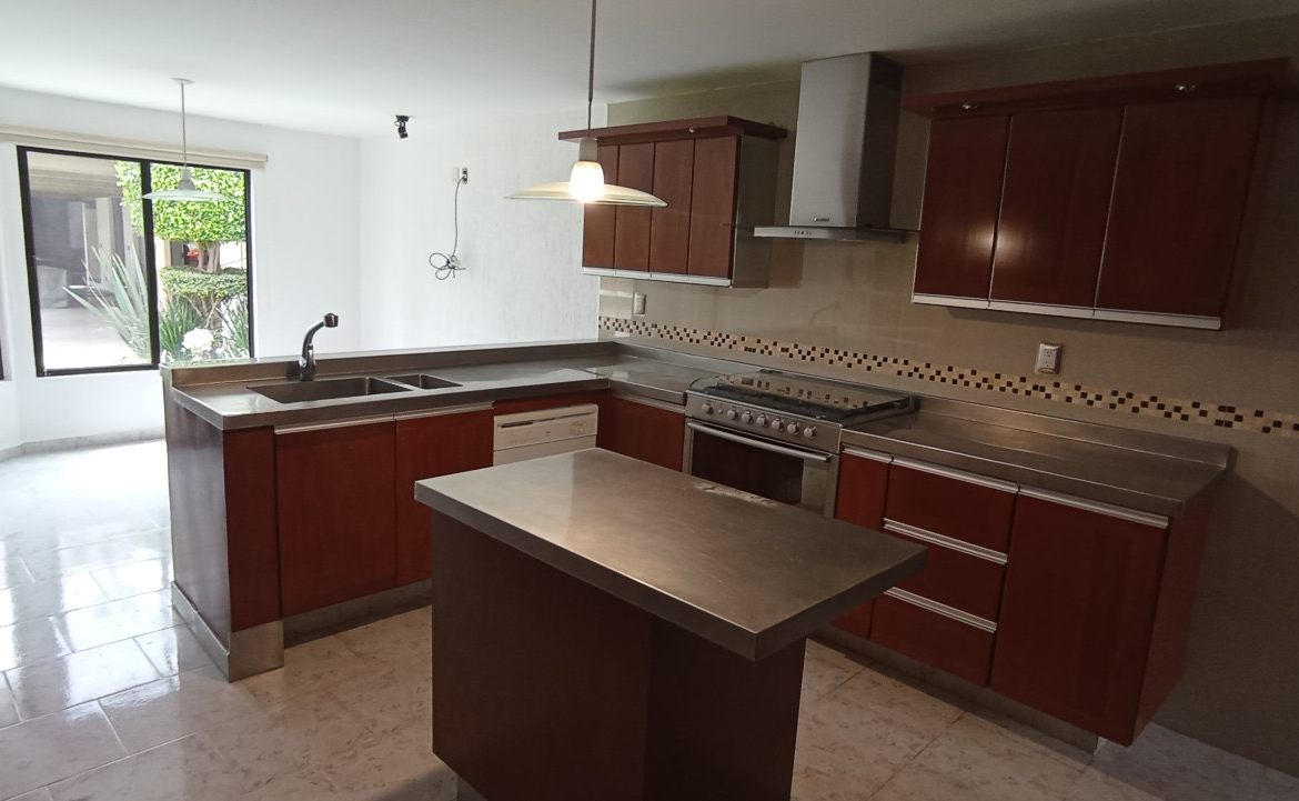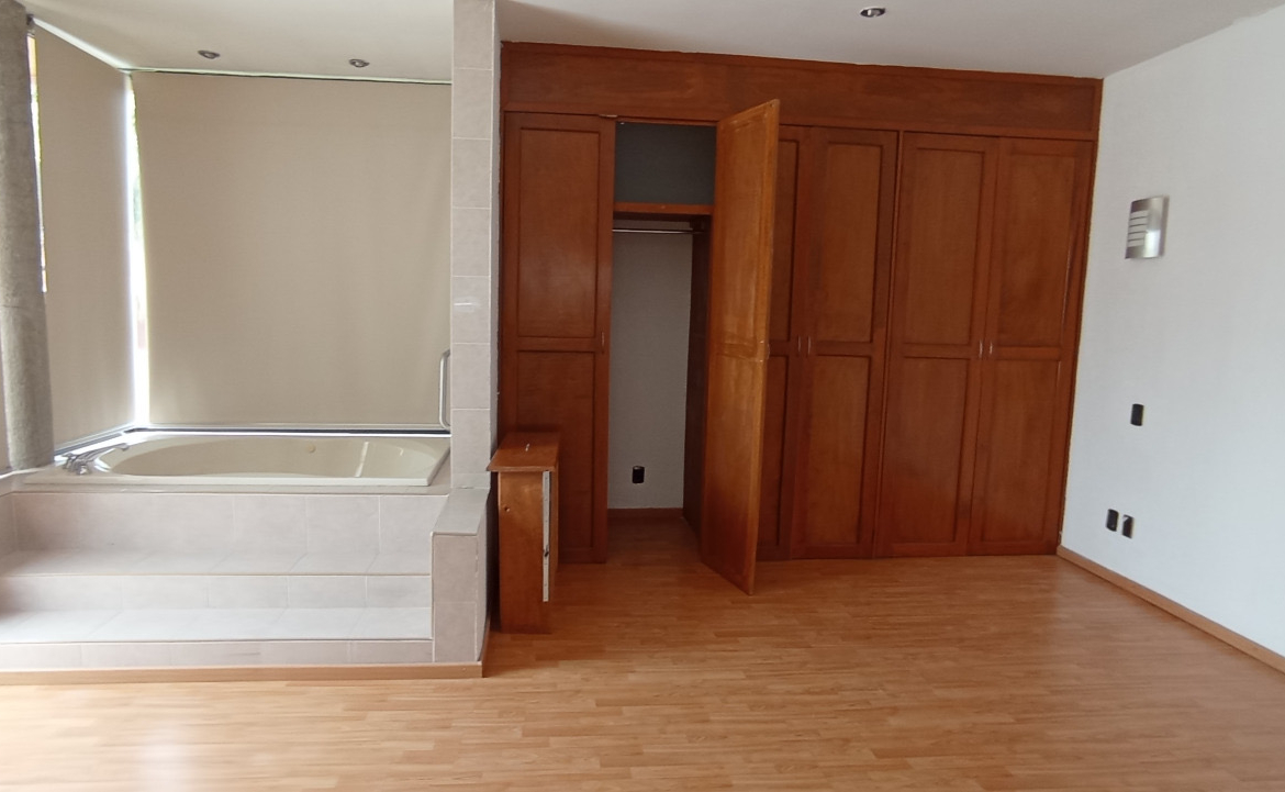 La propiedad destaca por su iluminación natural y espacios generosos. La casa principal cuenta con un estudio privado, salón de piano, bar y una cocina integral equipada con mesones de acero inoxidable y antecomedor con vista al jardín. En la planta alta, las cuatro habitaciones ofrecen confort absoluto, resaltando la amplitud de la recámara principal con tina de hidromasaje y vestidor.